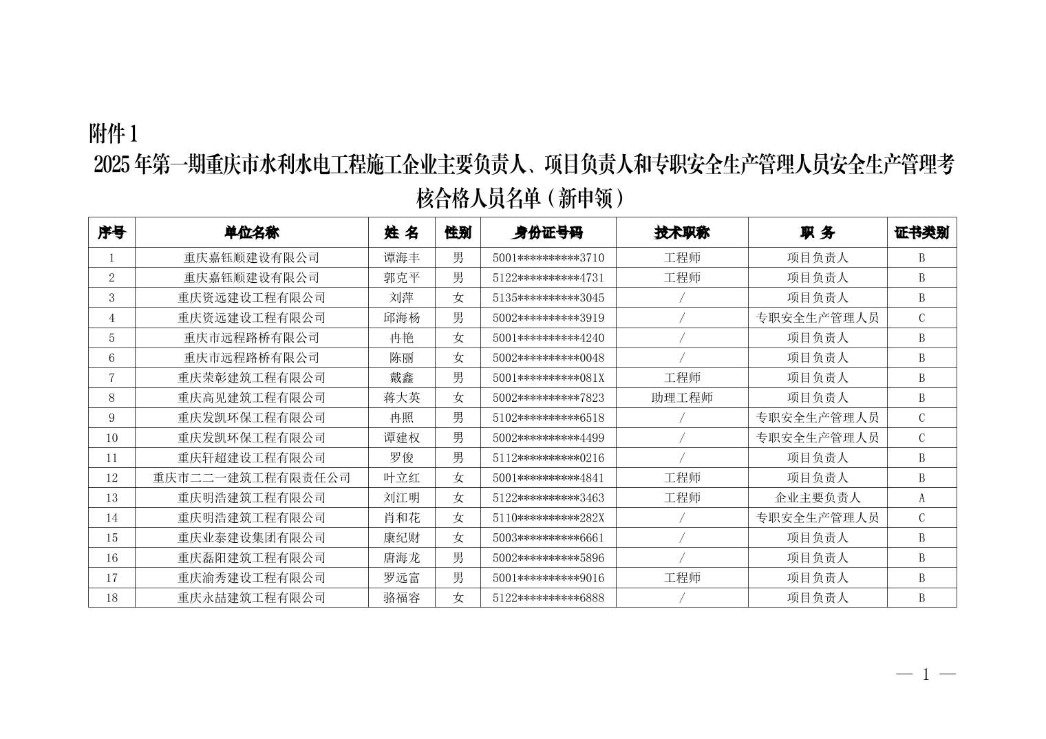 附件:1.2025年度第一期全市水利水电工程施工企业“安