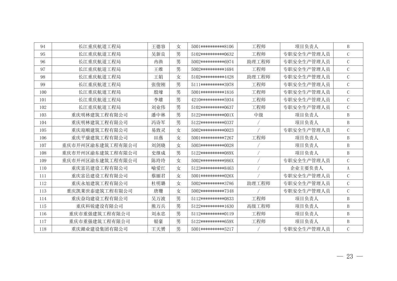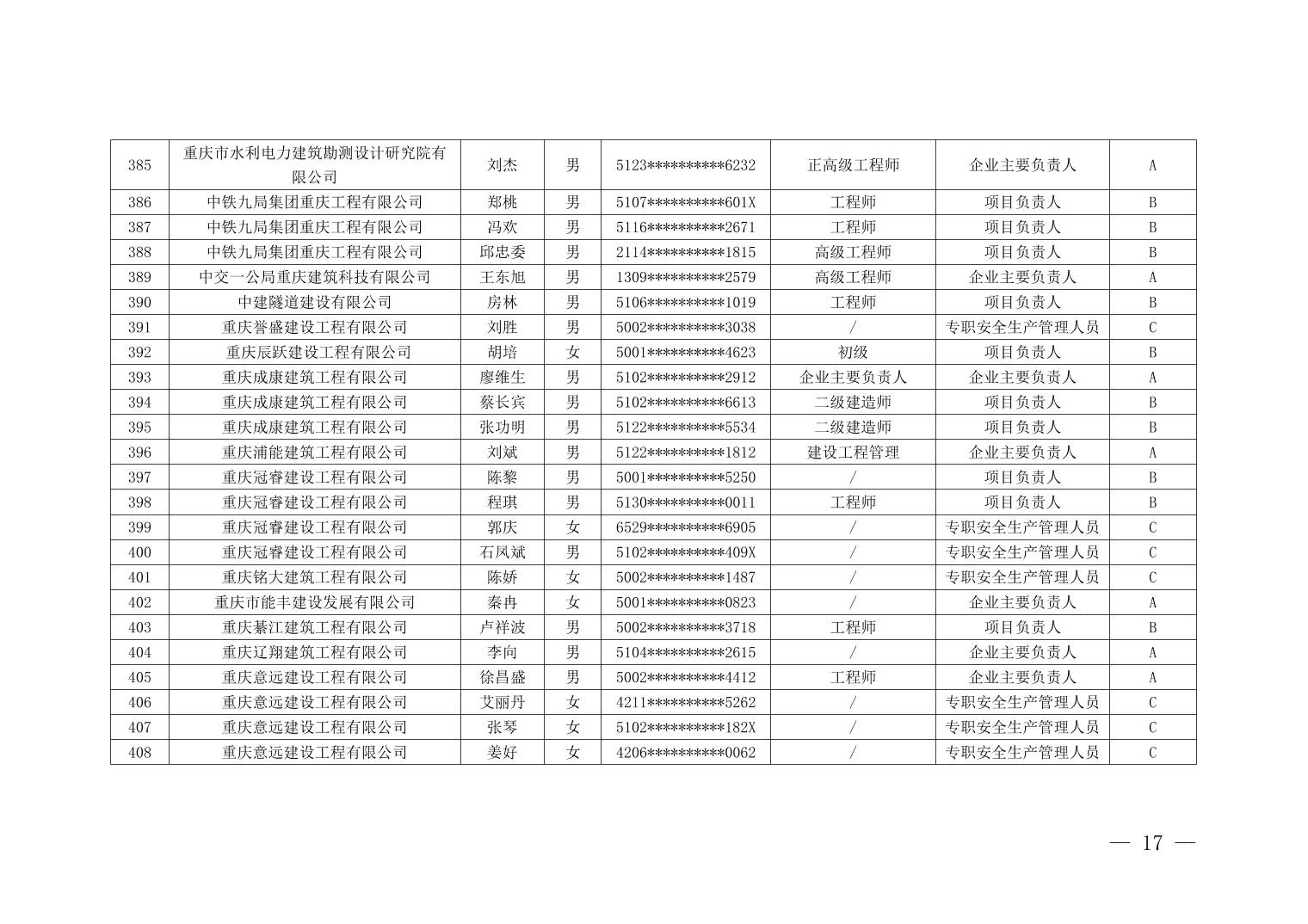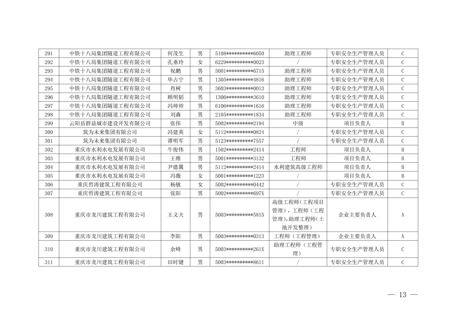 根据《建设工程安全生产管理条例》(国务院令第393号)、《安全生产许可证条例》(国务院令第397号)、《水利工程建设生产管理规定》(水利部令26号)、《水利部关于修订印发〈水利水电工程施工企业主要负责人、项目负责人和专职安全生产管理人员安全生产考核管理办法〉的通知》(水监督〔2022〕326号)的规定,市水利局于2025年3月分批次组织开展了全市水利水电工程施工企业主要负责人、项目负责人和专职安全生产管理人员(以下简称“安管人员”)安全生产考核管理工作。经公示期满后,现将2025年度第一期水利水电工程施工企业“安管人员”新申领考核合格人员名单(415人)和申请延续考核合格人员名单(147人)予以公布(详见附件1、2)。